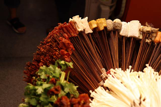傍晚时分的成都天仙桥,车水马龙与人群熙攘是繁华表象,等到灯火阑珊中,麻辣鲜香的味道终于俘获了你的胃。牛华八婆麻辣烫,四川元老级的串串,之前在《舌尖上的中国》里看到的时候,就馋得不行!看了《天天向上》之后就按耐不住了,赶紧扯上朋友来了。
