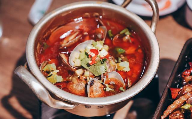 花甲新鲜,滋味十足,入口鲜辣交替,因为处理的干净,不会有沙石感。