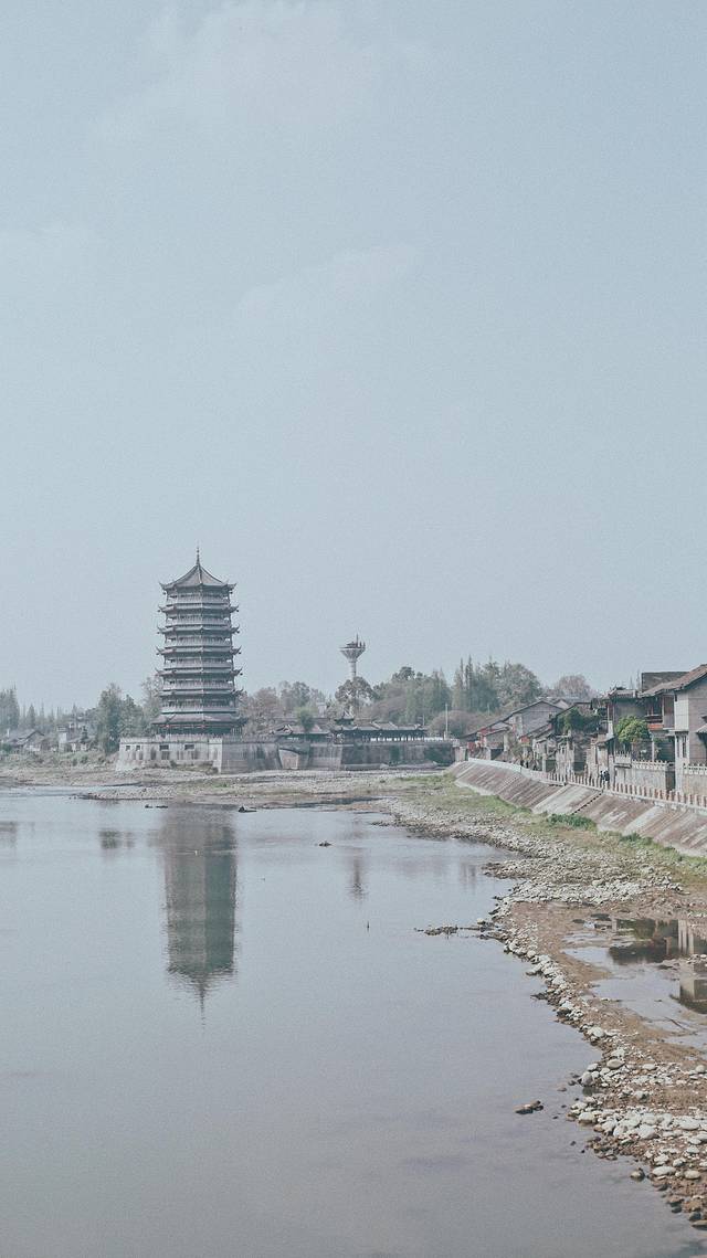 旷阔的河道,竖立着的7层宝塔,适合拍照,更适合当地人在这里晒太阳。