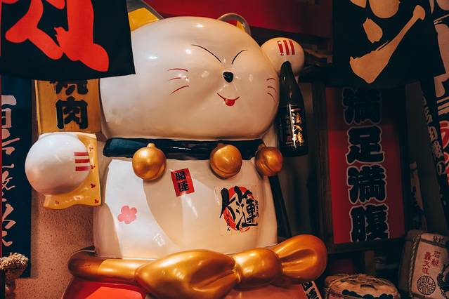 木质楼梯上二楼,各种半帘、招财猫充斥,日式小元素真的太可爱了。