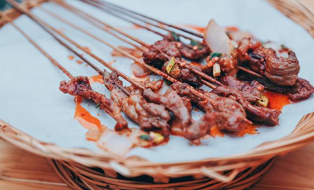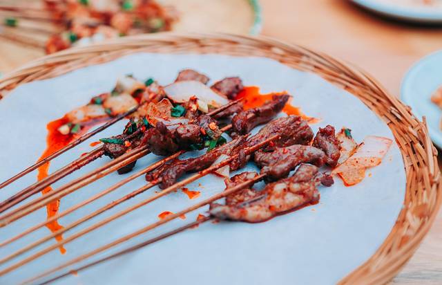 烤牛肉,肉质不柴也很嫩,牛肉在烤之前都需要先卤制,牛肉吸收了酱料的香气,烤完之后,馋到流口水。