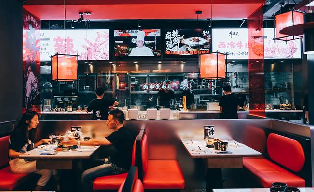 设计有承袭老店的因素,但也有所升级。整个店面以红黄2色为主调,看到就有火辣辣的热情感。