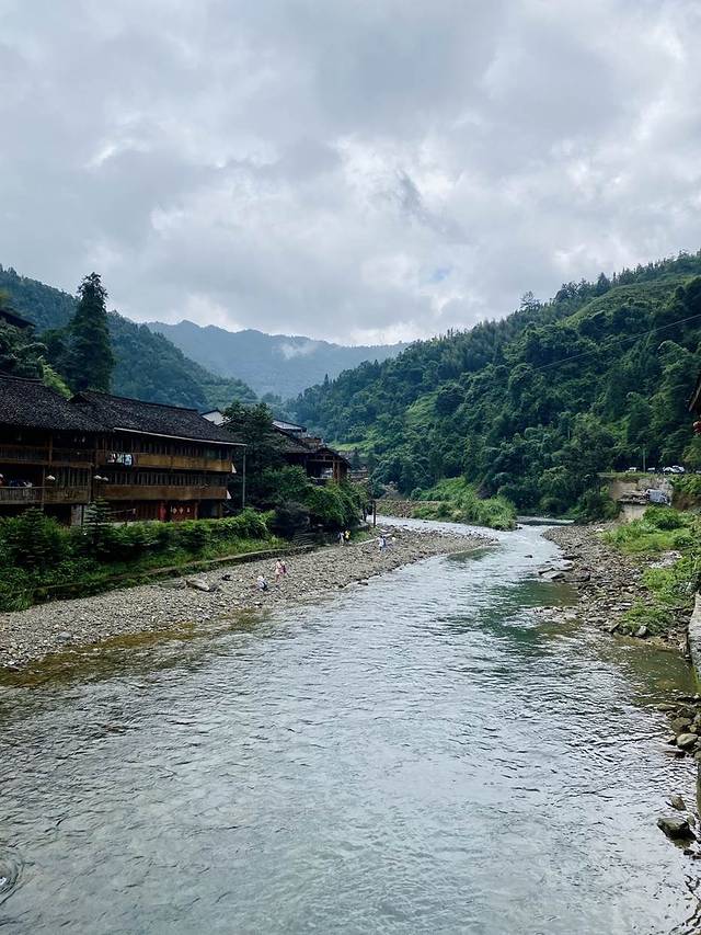 村子依山傍水,风景秀丽,很喜欢。这里的水也十分清澈。看到有家长带着孩子来这里玩水,好不热闹啊。