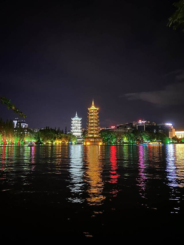 晚上先去看了看日月双塔。桂林的夜景确实很好看,灯光的运用也是卡到好处。