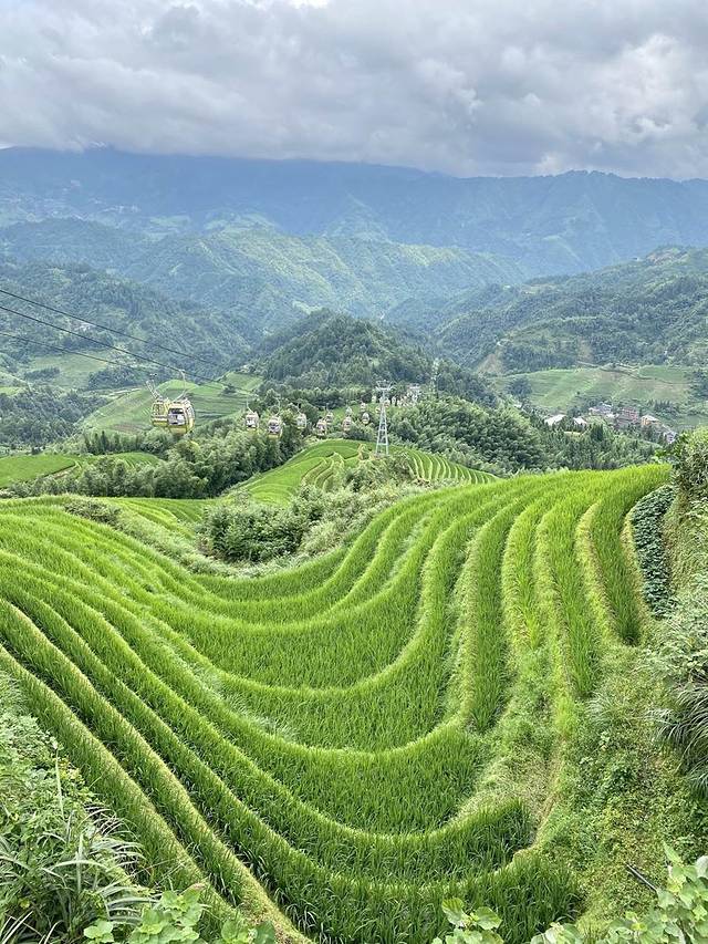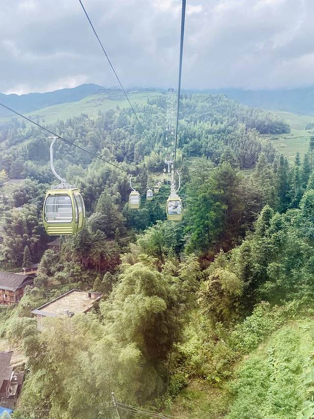 在龙脊梯田可以坐索道参观。从索道上俯瞰整个梯田的感觉十分好。想起我第一次坐缆车的时候,整个人紧张到爆了。这次就缓和了许多。次数多了几乎就无所畏惧了。