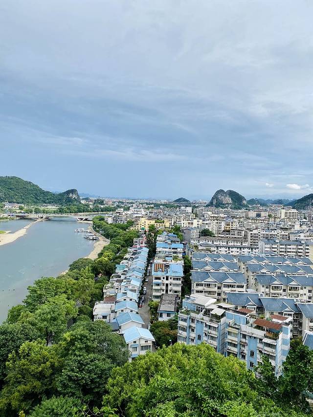 到了象鼻山,一定要爬到山顶,从山顶处可以俯瞰桂林这个城市。But,也不能说是俯瞰整个城市,桂林多山,总是有山遮挡的地方。