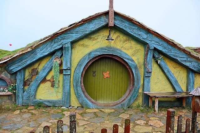 花海的后面就是网红的“霍比特小镇”,很可爱的小房子,小矮人们居住的地方,很适合拍照,如果天气好,蓝天白云,再穿上白裙子,一定很美!