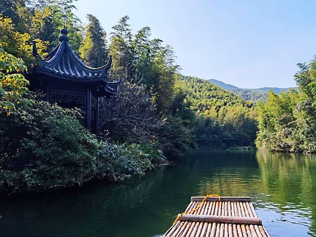 这里可以坐竹筏,感受周围的风景,竹筏不是代步工具,只是纯欣赏的,这湖也比较小,来回也就二十分钟不到。船上有桨可以自己划着玩儿,200元一条船(最多6人一船),可以和别人拼船,人均30-40元。