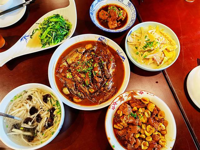 之前看攻略说找到了这家珍味堂,装修很古色古香,外观很漂亮,饭菜的量也很足。可以美团上团购套餐,比较划算。我们三人一共去他家吃了两次一次是288的套餐,一次是228的套餐。必点菜:天目湖砂锅鱼头汤、扎肝、私房豆腐雁来蕈、溧阳白芹、乌米饭(基本上288套餐里都有)
