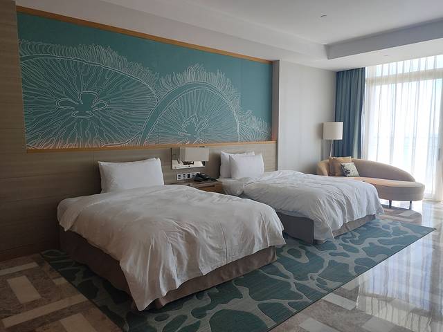 订了皇冠海景房,由于是国庆前夕加上9月算三亚淡季,双床房不含早500-650元,在6楼。之前看到去哪儿有360元的皇冠豪华房含早,差异仅仅在于海景,然而海景房看到的是二线海景,没有太惊艳,所以感觉皇冠豪华房的团购性价比更高。