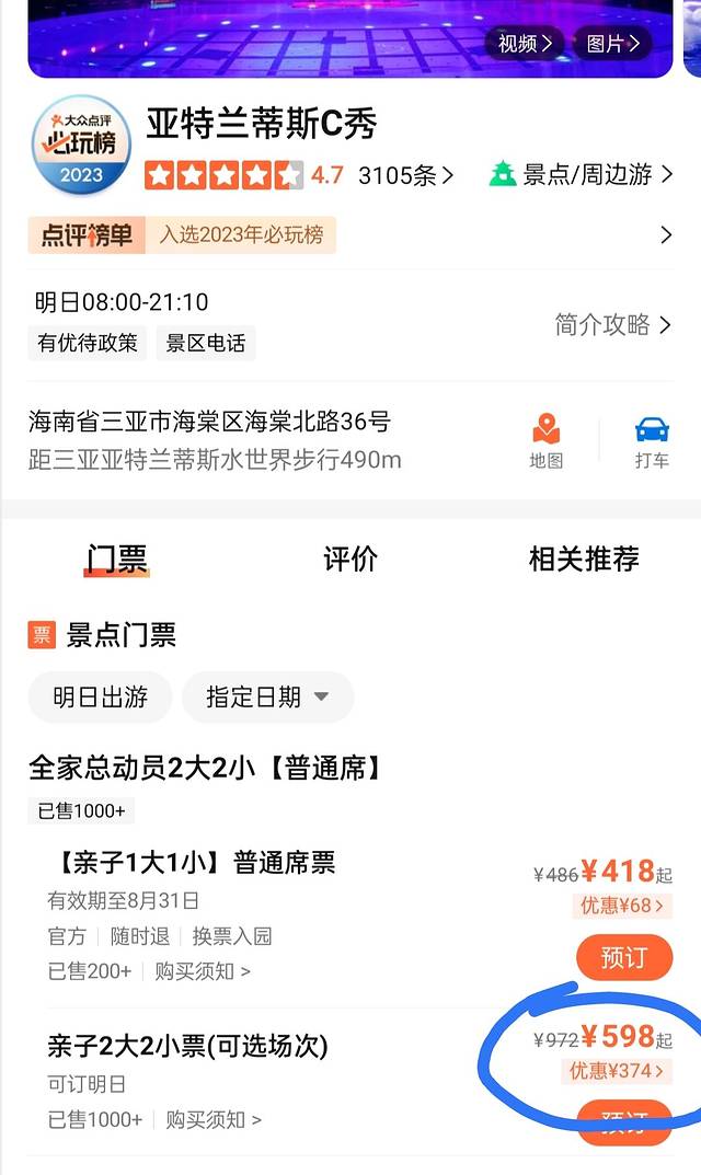 入住亚特兰蒂斯酒店入住一晚送一张c秀门票,入住旁边爱必侬度假公寓入住一晚也送一张,我们2个大人现在换房当晚看,应该也省了近600元门票费了。