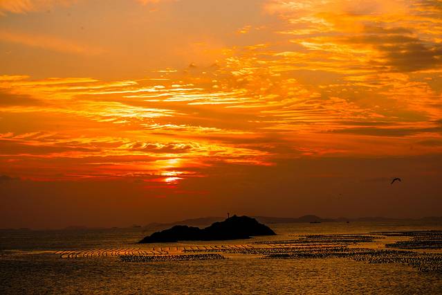 这里无遮挡的视野,来往的渔船、飞翔的鸟儿,都是夕阳下最美点缀。