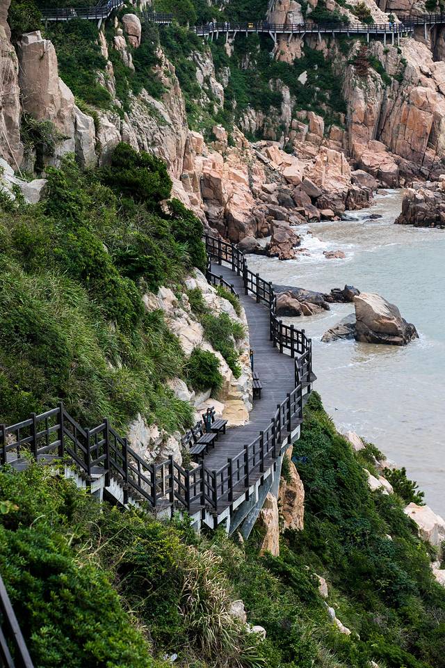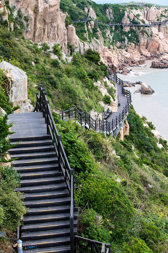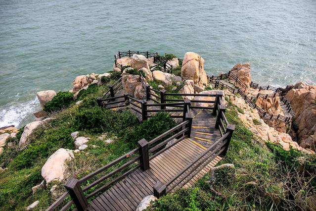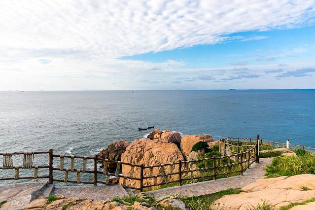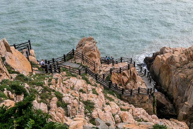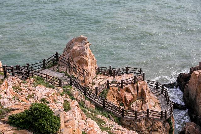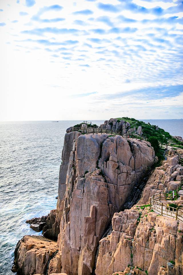 崖顶是观日出、揽海景、望渔舟晚归的最佳点,凌空绝壁,层层叠叠,奇观异石,形态各异,运气好的时候还可以泛舟海面看渔夫打鱼、渔嫂拾贝的丰收景象。