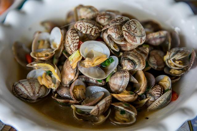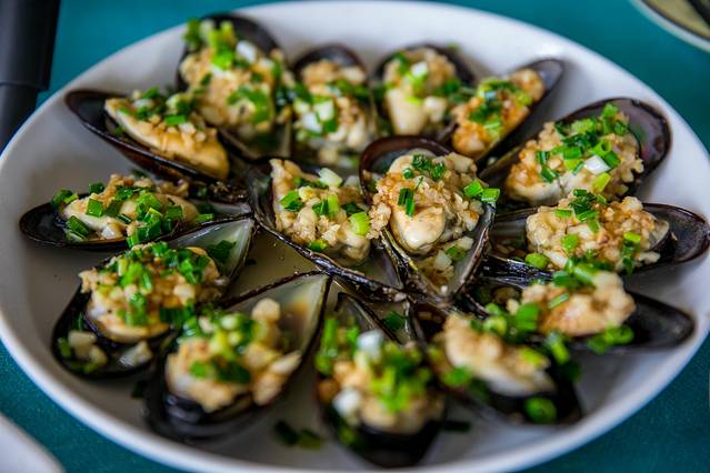 鲜活贻贝是大众化的海鲜品,可以蒸、煮食之,也可剥壳后和其他青菜混炒,味道鲜美。由于贻贝产量大,收获后不易保存,历来多煮熟后加工成干品—— 淡菜 。淡菜营养价值很高,并有一定的药用价值,嵊泗人两种经典的烹调方法。