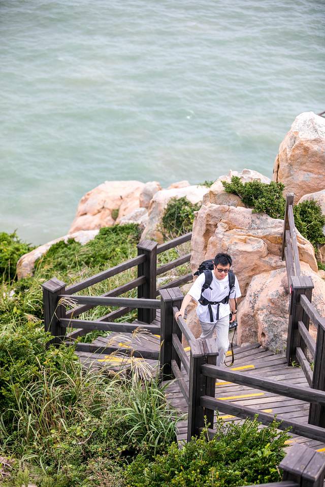 完全沿着海的栈道,有台阶可以下去, 栈道栏杆并不非常牢固,要小心一点。老实说,来六井潭就是奔着灯塔而来,矗立在岩石上,终年为渔船保驾护航。
