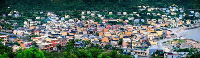 在这里放飞无人机,可以看到岛上远处五颜六色的房屋。这里也被称为“东方小希腊”,村村有沙滩,家家海景房。