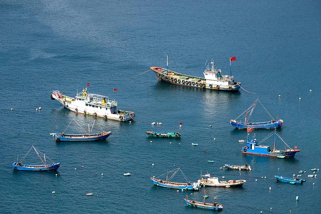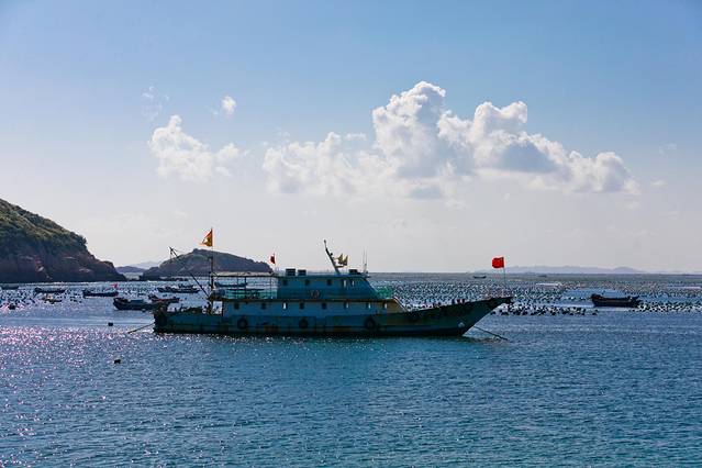 当天来往的船只不多,偶有两三搜渔船,小轮船缓缓划过海面。