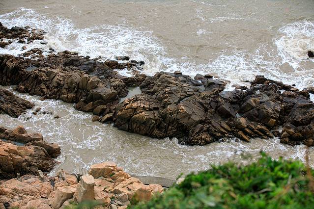 六井潭的白色灯塔几乎是来者必去之处,建在木栈道的中段,面向蔚蓝大海,沿着楼梯可以攀上灯塔,眺望远方,看千舟竞发,不过风很大,相机,手机要放放好,掉下去必定粉身碎骨啦。六井潭也是个观日出的好地方,看红日从东面升起,把海面染成红色。