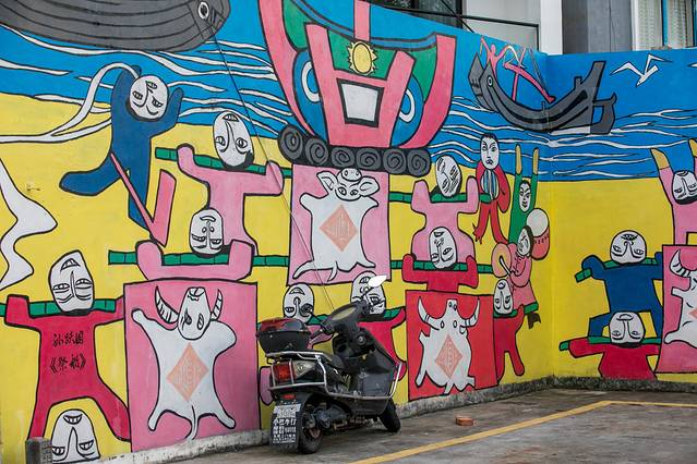 田岙村原来是一个不知名的小村子,后来将渔民画搬上了渔家墙头,一幅幅看似夸张、随意却蕴含了生活热情的渔民画形成了一道独特的风景。现在全村一半以上的房子外墙绘有渔民画。小渔村宛若一座渔民画壁画露天美术馆。