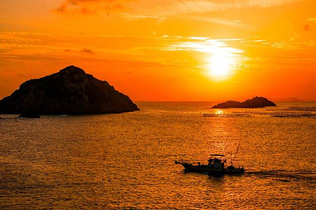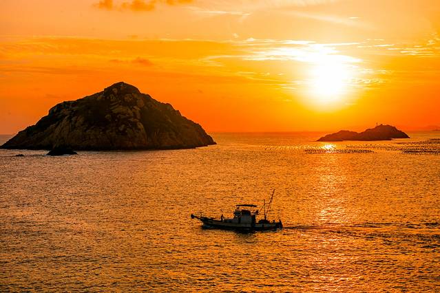 第四天:坐船前往枸杞岛,看山海奇观、海上牧场,下午体验出海海钓,干斜村日落。