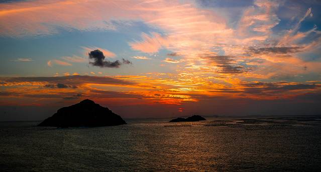 枸杞岛的美已经无需赘述。枸杞岛干斜村是海上牧场最密集的地方也是欣赏海上日落最美的地方,一片贻贝浮子间,小船或行驶或停泊在海面上,和落日交相辉映,怎一个美字了得?