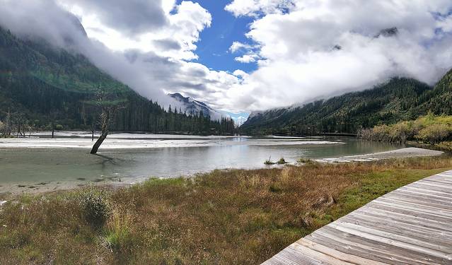 接下来到了四姑娜措站,值得好好一游了。我们往左环湖游览,不时遇见天降神光,此时十点左右光线千变万化(如果中午只有硬光拍出的景致就减分了),我们流连了半个多小时,从栈道右边出来时还遇到一片花海。
