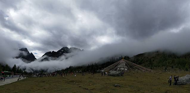 中午12:00从四姑娘山的全景观景平台“猫鼻梁”下到四姑娘山镇入口时,往右即是长坪沟景区入口。此时不要去宾馆,直接在入口找地儿解决午餐后就往右去长坪沟,可避免镇上狭窄的车道上堵车。