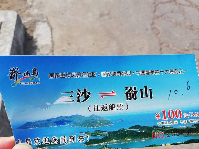 一大早从三沙镇民宿出发,自驾来到三沙码头,停车场挑了个下午阴凉的地方停车,去售票处买船票。来回船票共100元,国庆期间早上8:30开第一趟,一直到下午三四点多都有船进岛。下午离岛的船最晚5点。游玩时间还是很充足的。