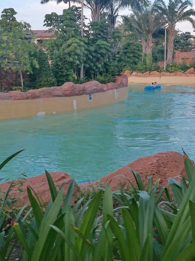 全程是环绕着园区漂流一圈,因为会长时间直面太阳,所以建议夕阳后不那么热再玩。老少皆宜,非常放松,可以和朋友边聊天边顺流而下。