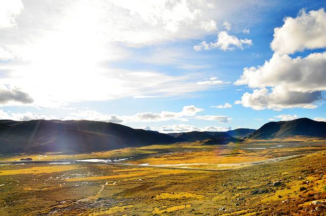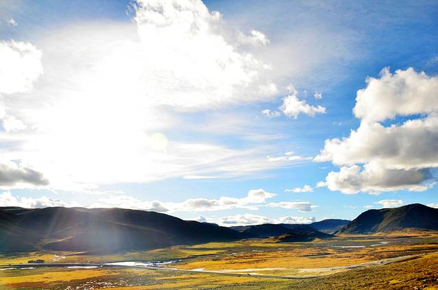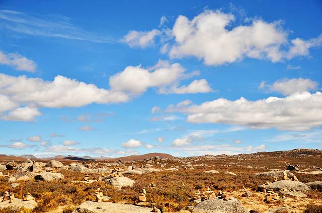 清晨,迎着理塘的第一束阳光,我们起来了。外面看着很暖,空气依旧清冽。从理塘出发,不一会儿就到了兔儿山,这是一座经历了了古冰川千万年变化的见证者,风光虽然比不得毛垭大草原的秀丽,却多了几分历史的苍茫和孤寂。这里的古冰川遗址的冰川消融,形成了几十公里 黑森 森的石滩,石缝中长满干枯黑褐的灌木,景致奇特。