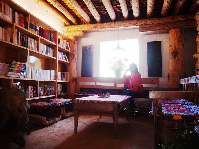 这里有一个小插曲:我和朵爸在寻找经幡路的时候,经过一个坝子,看到一家藏族同胞在脱玉米粒,他们热情的和我们打招呼,我看到旁边有个两三岁的小女孩在地上玩,就把车上朵朵的零食拿了几袋给她,还拿了两个月饼,于是她的父亲热情的邀请我们去他家里参观。我开始还不好意思,在他的一再邀请下我们进了他家的院子,当他打开房门的一刹那,简直亮瞎了我的狗眼,屋内很多藏书,还有专门喝茶和咖啡的地方,桌上还有正在制作的千年菩提手串。。。他的老父亲拿着一串油亮亮的链子,漂亮极了。。。在征得他的同意以后我仔细看了看,据说他的链子也价值不菲,太贵了买不起,哈哈,最后在他家带走了千年菩提树的小手串。。。出于尊重,我没有拍照,有机会大家到了乡城可以去看看。