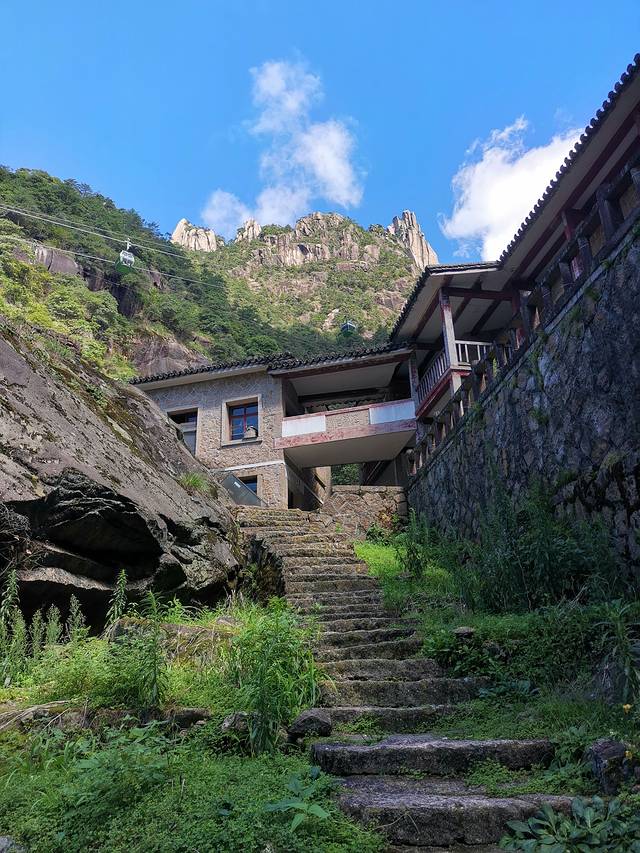 天气很好,一路上还能看到这条山路曾经的辉煌,如今很多游客都改从东线或索道上山,山中亭台房屋已是人烟渺渺,一派破败