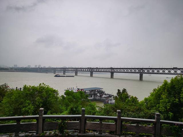 ③晴川阁其实也很一般,感觉是个小公园,但是登上晴川阁,俯瞰长江有一种烟雨朦朦的感觉,雨雾中还能眺望到江对岸的黄鹤楼