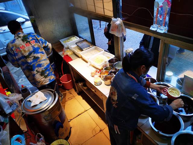 铺子在街角,属于老建筑的一层,如果不是天冷朝外的档口飘出做饭的热气,如果不是下雨天门口也被排队的人们堵满,店牌大概已经和老建筑相融了。