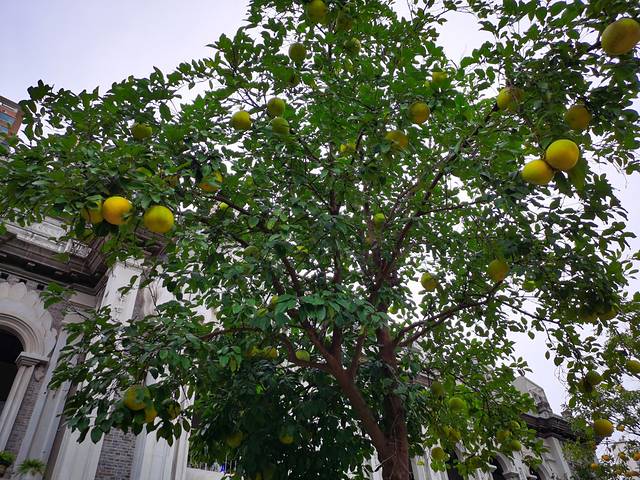 寺院中好几排柚子树!!10月份柚子果实已经挺大了,入眼满满的黄色圆球,衬着绿叶和异域风格的建筑,仿佛来到了异域游览,而且出片率超高,非常值得!!!
