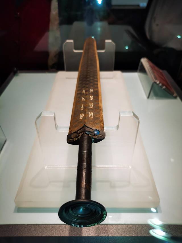 四层:越王勾践剑——太绝了!!!打眼看特别润,金属感觉做出了玉的质感!!!展厅的工作人员向我们介绍,说用手机打光在剑柄的尾部同心圆上(工艺太厉害了),能照出“65江陵望?山M1棺内9号? 5.555"(问号是可能看错的字)。经历千年不锈,木老师猜测可能含镍,不是纯铜才这样的,好厉害,这比例控制绝了。