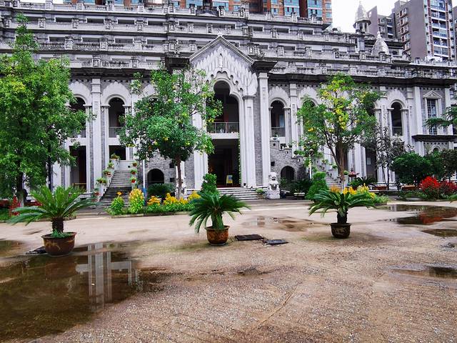 下雨天的景色真的太不一样了,配上红砖楼,不由分说就把人就带回民国时期了~纪念馆是由原来的鄂军都督府变身而来的。纪念馆周围的景观布置以及入口广场国民时代的风格比较强烈的,漫步其中着实会有一种自己在《伪装者》《黎明之前》《潜伏》这种电视剧的片场哈哈哈大门前的广场上远远看去有一个人物塑像,我俩猜是谁,凭着手持小礼帽,成功猜中是孙中山先生,其实也不太用猜哈哈哈