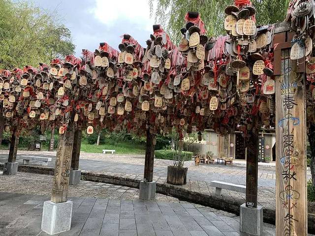 这个古镇相对大理和丽江古镇来说算是比较淳朴的一个小镇了里面有当地人居住还保留着本来的民风消费也相对大理和丽江偏低我们来的早商家陆陆续续开门在这里时光都变的缓慢找到了一个小山头俯瞰整个小镇全景木楼青瓦绿水青山适合在里面找家民宿体验下当地人的生活节奏快到9点多陆陆续续进来好多拍婚纱照的团队这一路遇到不下20对