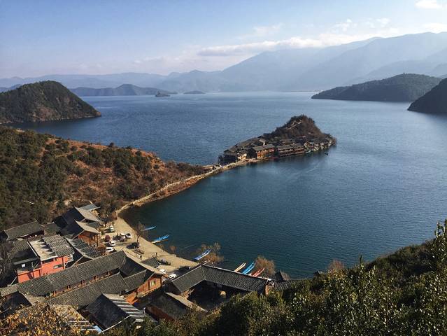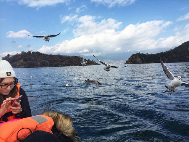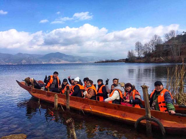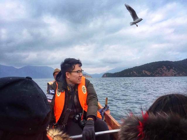 大叔在船尾负责掌舵,后面利用“介绍摩梭族美女”为诱惑,让我充当了船夫的角色,去程顺风1个小时,回程逆风40分钟,累的我中午连筷子都拿不稳了。