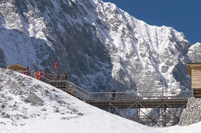 大索道终点海拔为4506米,心跳加速之旅从这里开始,这里会有两条路,一条路(图1)距离较近,攀爬会比较辛苦,另一条(图2)距离较远,相对平缓一些,如果时间充裕建议走第二条,无论体力还是拍照都更合适。