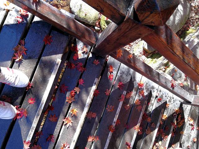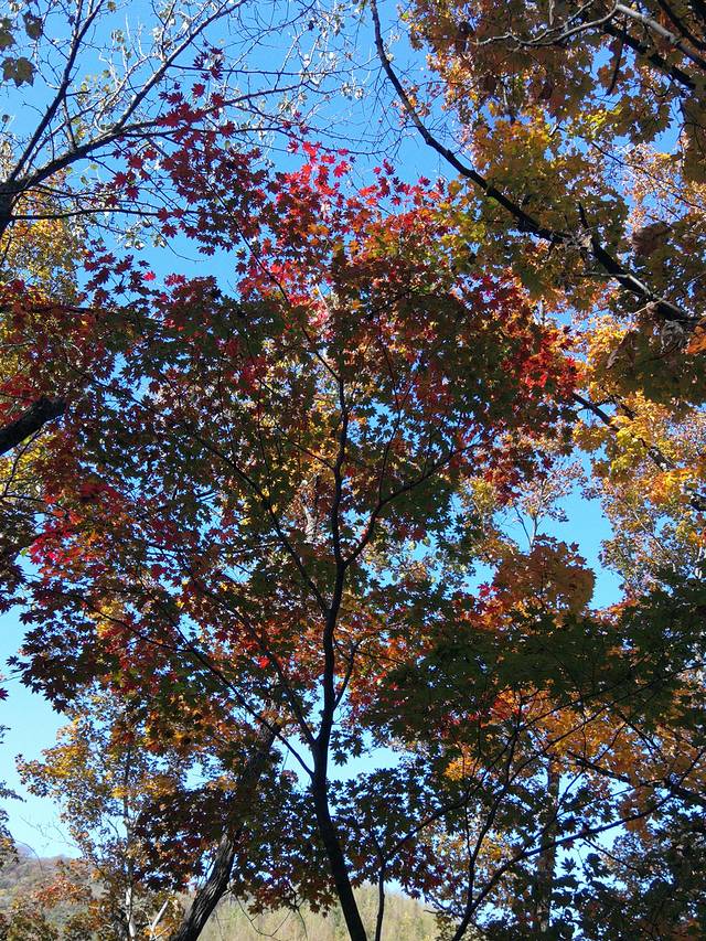 这边的枫叶是那种小片的枫叶,有三角、五角、七角的~~~红、黄、绿交织在一起,再加上蓝天白云,美的一塌糊涂!