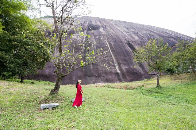 大斑石是一个半球状花岗岩体,与其说这是一整块石头,不如说是一座石山。“一石成山”,巍然屹立。