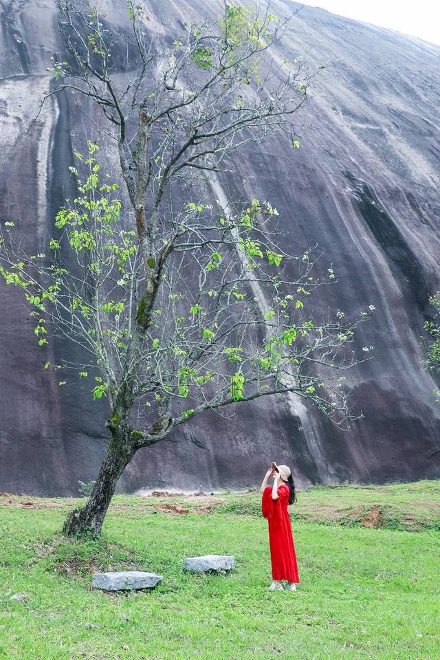 大斑石是山顶并非光秃秃的毛发不生,反而葱茏一片,翠绿欲滴。游客可以从斑石两侧登上山顶,山间林木葱葱,野花烂漫。