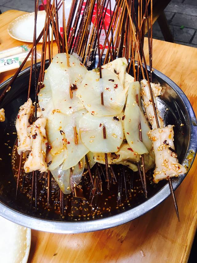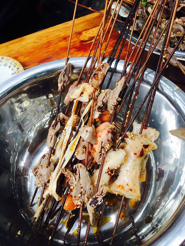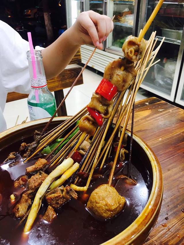 到达成都是晚上十一点啦,高铁晚点四十分钟,办好入住赶紧下楼串串走起。