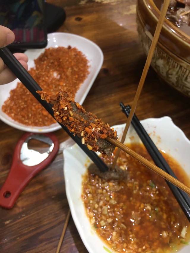 酒店附近小店点个猪肉锅盔,猪肉是没有花椒的,牛肉会有哦。