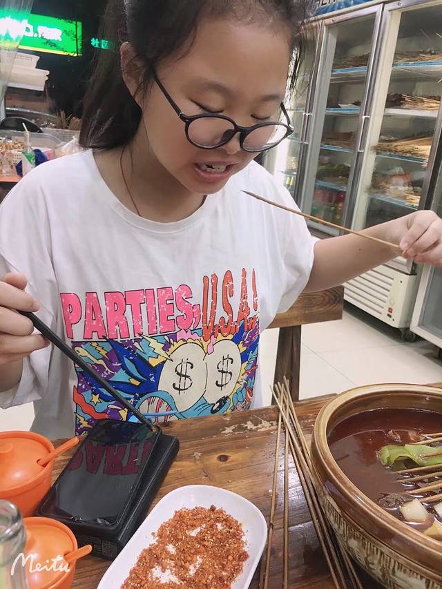 四个冰凉粉、一个酸菜炒饭、N多串,五个人敞开吃还不到200,要知道我们这两个娃比大人都会吃哦。