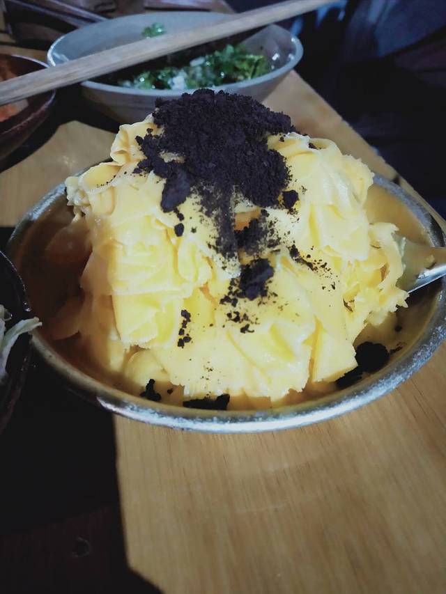 芒果绵冰,忘记跟老板说吃完再上,想着解腻的,但是忘记说啦,也不能退回去,都是现点现做,口感还不错,没有沙沙的口感,很绵不会很甜。