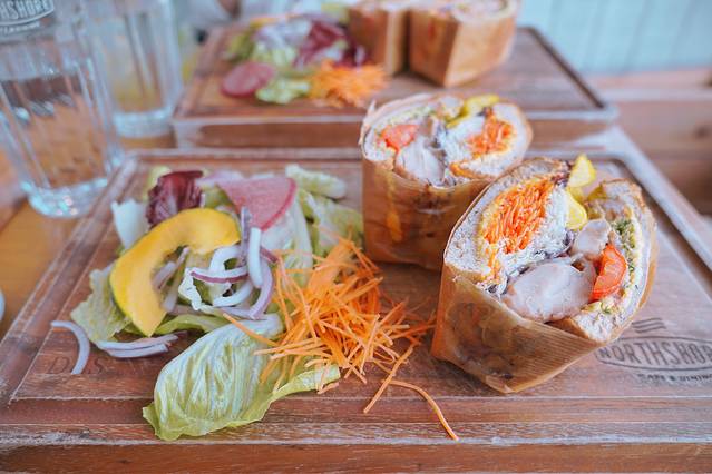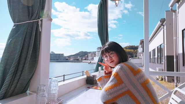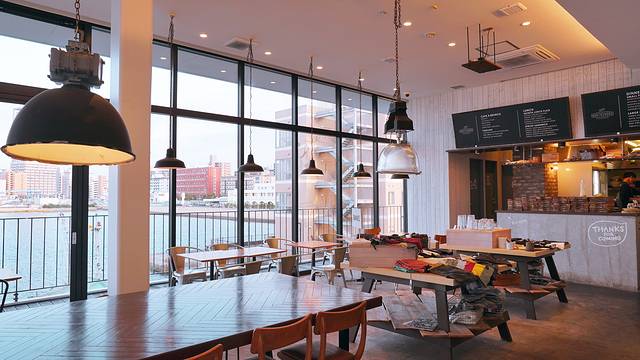 看了看时间也才下午2点多。慢悠悠的散步到港口一家咖啡店来个午餐+下午茶。这家有些北欧风的咖啡店叫Northshore Kagawa,它是家居百货店和咖啡店的合体。主要是view一流,濑户海尽收眼底!