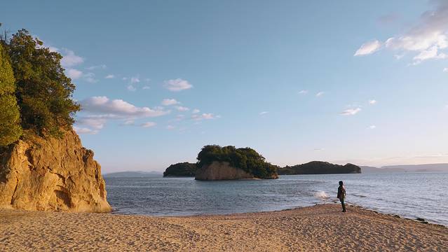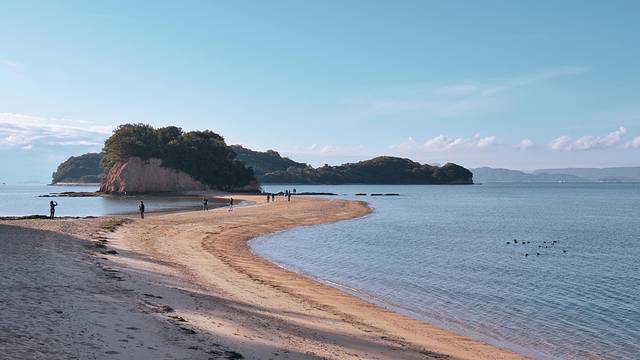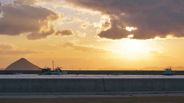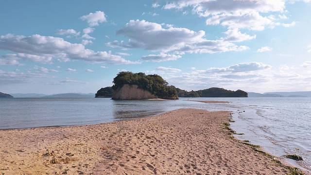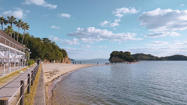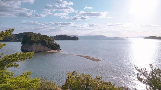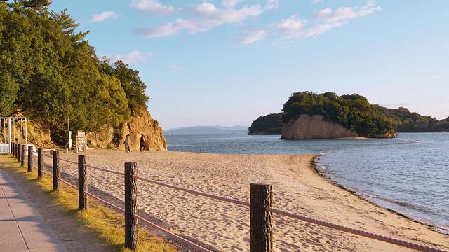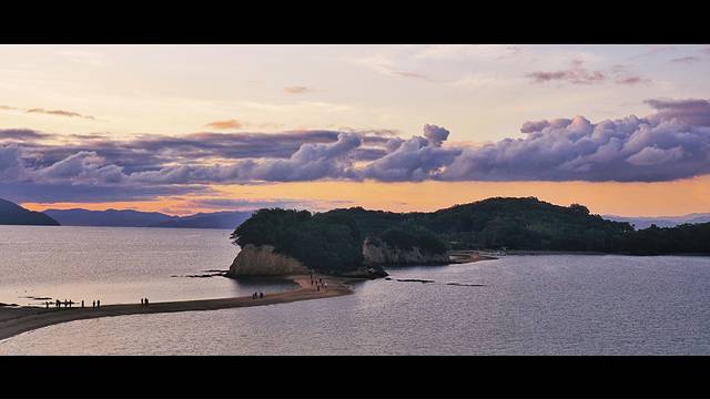 濑户内海可以看尽潮涨潮落。随着太阳升起落下,通向对岸的天使之路在海面中出现又消失。