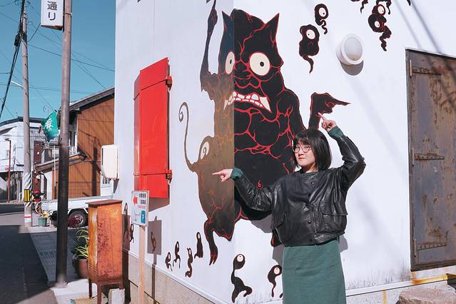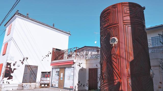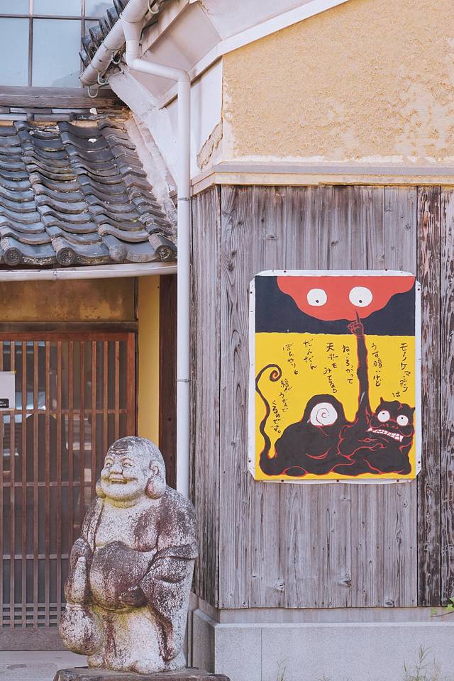 一路上偶遇各种稀奇古怪的装置,俏皮可爱的壁画,自然都是艺术祭的手笔。后来才发现这些建筑都是著名的妖怪博物怪的一部分,不过这会过了季,连观光售票口都关闭了。